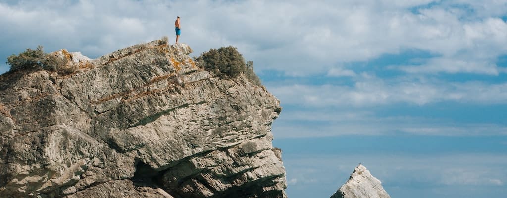 - Despite being scared, he took his courage in both hands and jumped off the diving board.